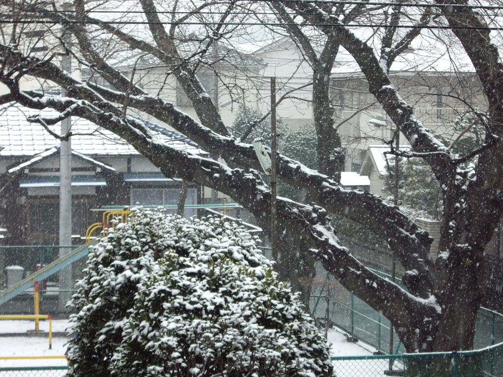 今朝、あまりの寒さに驚きカーテンを開けてみると、雪が!