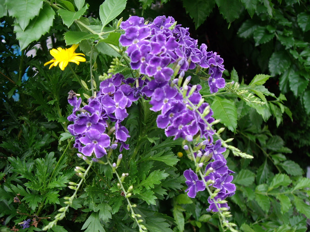 紫色の花の奥に、黄色の花が何気に咲いているのが、さりげなくて可愛い